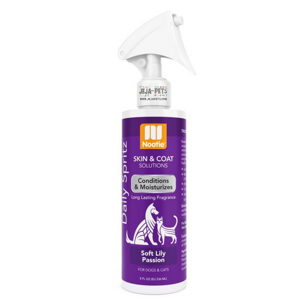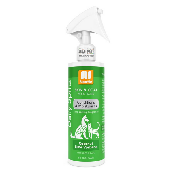 The light citrusy scent of our Coconut Lime Verbena long-lasting fragrance will keep your dog smelling great after and between baths. Nootie Daily Spritz is gently formulated to condition your pet’s coat and moisturize their skin with natural plant-based glycerin.